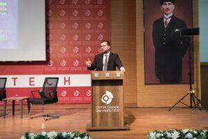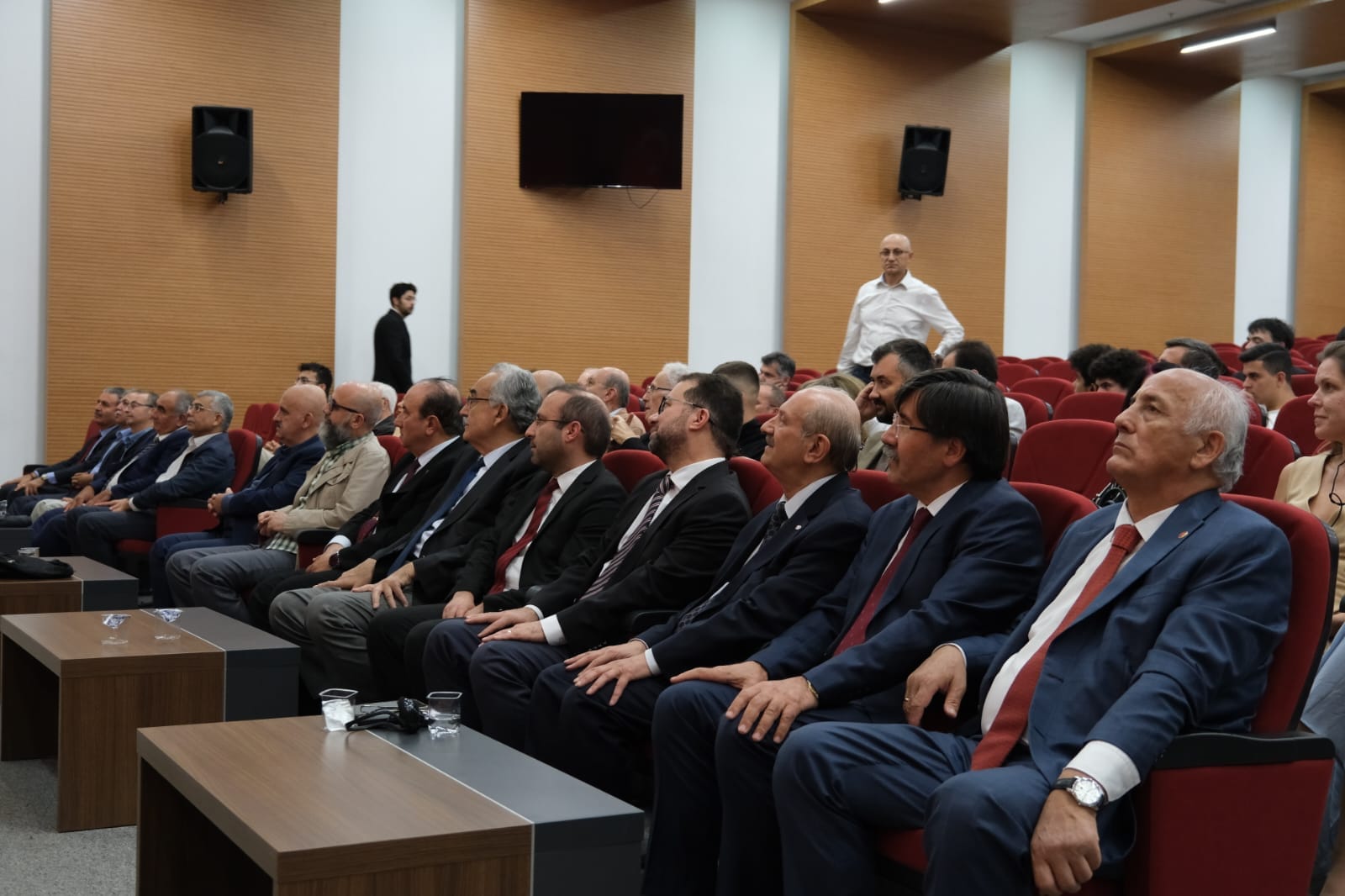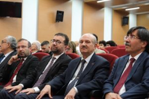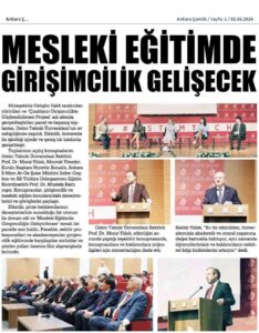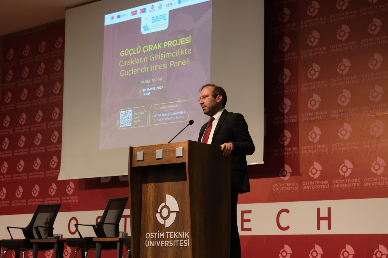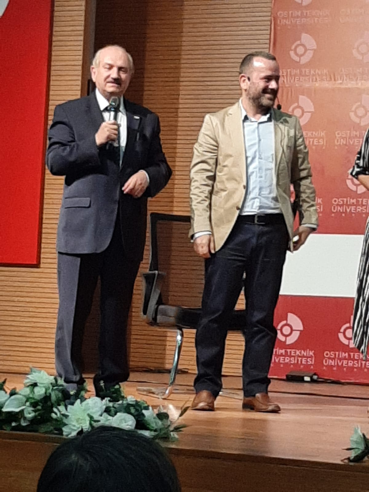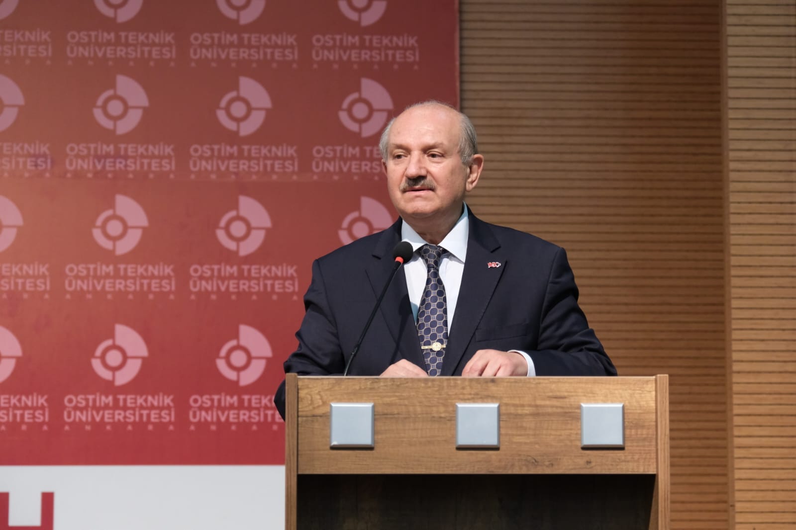 Bir mutluluğumuz da; içerisinde bulunduğumuz bir zamanlar Balkanların en büyük sanayi sitesi olan OSTİM Organize Sanayi Bölgesini kuranların ekseriyetinin çıraklıktan yetişme işverenler olduğudur. Daha önemlisi de çıraklık üzerinde yükselen bu sürecin, güçlü gelişimin yine dünyaya örnek tam sanayi alanının ortasında Ostim Teknik Üniversitesi’ni (OSTİMtech) kurmuş olmalarıdır. Bu vesile ile OSTİM’in vefat eden önderlerine Allah’dan rahmet diliyorum. Bugün bu bayrağı yükseklere taşıyan OSTİM OSB’ ve OSTİM Teknik Üniversitemizin kurucu Mütevelli Heyet Başkanı Orhan Aydın başkanıma ve değerli yönetimine bu anlamlı hizmetleri için teşekkür ediyoruz.