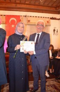 Onur Belgesi takdiminde Başkan Konaklı; Onur Belgesi alan 31 öğretmenimizin bu akşamki yüksek sinerjiyi bir yazı haline getirip illerindeki yazılı ve görsel medyada paylaşmalarını önemini belirttiler.
