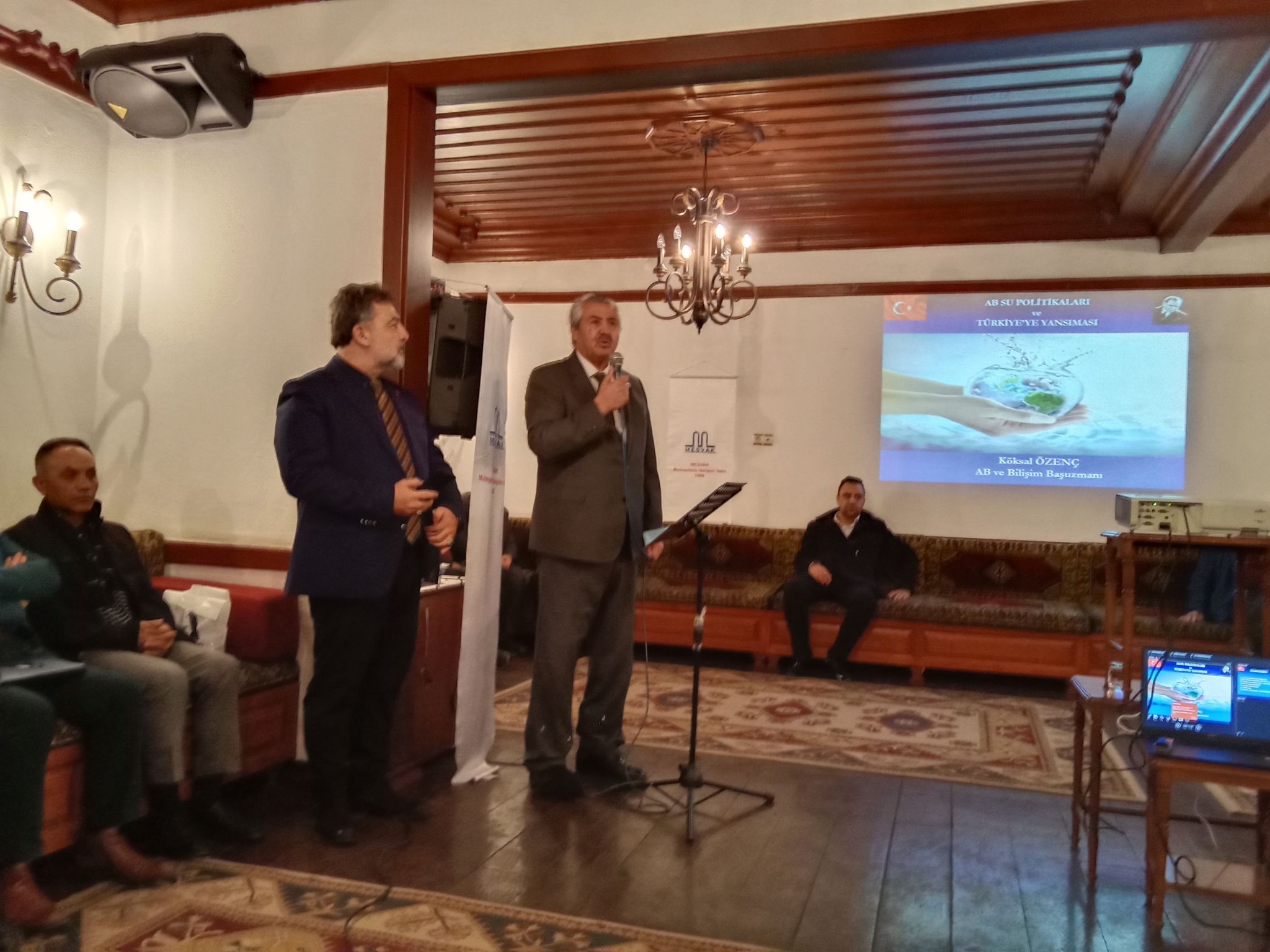 Dr. Özcan Kars’ın sunumuyla, Kayseri Dernekler Federasyonu KDF Başkanı Ahmet Etöz’ün açış konuşması, MESVAK Başkanı Nurettin Konaklı’nın selamlaması, toplantı yöneticisi Prof. Dr. Ali Bilgili’nin söz verdiği Kayseri’de Kızılırmak Ekosistemini Emir Türkay’ın anlatımı, AB ve Bilişim uzmanı Köksal Özenç’in AB Su Politikaları ve Türkiye’ye Etkisi temalı konuşması ilgi ile dinlendi. Program Şair ve Yazar Cafer Türkseven’in üstat Abdullah SATOĞLU’na ait Su şiirini içten yorumu ile son buldu. Bir kez daha dinledik ve anladık ki Kızılırmak geçtiği yerlere tarımdan enerjiye hayat veriyor.