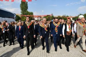 Şenlik; Valimiz Mehmet Makas, il protokolü ile birlikte MESVAK’ta 30 kişi ile 30. Karakeçili Ertuğrul Gazi’yi Anma ve Uluslararası Kültür Şenliği kortejine katıldık. Mehter takımı yürüyüşü ile başlayan şenlik, jandarma çelik kanatlar mehteran takımı gösterisi ve Kuran-ı Kerim tilaveti ile devam eden programın açılış konuşmalarında MESVAK Mütevelli Heyet Başkanı Kazım Ceylan çok Oğuzlar’dan Ertuğrul Gazi’ye Karakeçili Aşiretinin göç, savaş ve yerleşim süreçlerini, Kayı Boyu olarak Anadolu’daki fonksiyonunu anlattı. Konuşmalar Karakeçili Belediye Başkanı Hüseyin Özçelik, Kaymakam İbrahim Ergin, Kırıkkale Belediye Başkanı Ahmet Önal’ın konuşmalarından sonra Vali Mehmet Makas anlamlı konuşmasında özetle “Yüce Türk Milletinin en büyük özelliği zor günlerde birlik ve beraberliği sağlamasıdır” dedikten sonra “Öncelikle bu Şenliği birlik ve beraberliği pekiştirmek adına halkın katkılarıyla yapıyoruz. İkinci amacımız Bilecik’te Ertuğrul Gazi Şenliğinde Sayın Cumhurbaşkanımızın dediği üzere gönül köprüsünü (geçmiş ile gelecek arasında) oluşturmaktır. Mazideki kökünden gücünü almayan hiçbir milletin atiye yürümesinin imkan ve ihtimali yok.Yüce Türk Milleti dünyaya nizam versin diye yaratılmış bir millettir. Biz buna inanıyoruz. Yüce Türk Milletinin ferdi olmaktan bugün gurur duyuyoruz yarında duyacağız.” dediler. MESVAK’ın heyetinde Mütevelli Heyet Başkanı Kâzım Ceylan, Yönetim Kurulu Başkanı Nurettin Konaklı, Başkan Yardımcısı Remzi Aksoy, Mesvak Yüksek istişare Kurulu Başkan Yardımcısı Dr. Özcan Kars, Mesvak Akademi Başkanı Prof. Dr. Mehmet Tekin, gönüllü üyeler Yazar Em. Vali Adnan Yılmaz, İç Anadolu Birliği Başkanı İsmet Taş, yadımcıları Hafize Şahiner, Nur Dicle, İnsan ve Kalite Derneği Başkanı Sami Öztürk, Em. Tarım İl Müdürü Ruknettin Ceyhun, Mamak Diş Bakım Merkezi Başhekim yardımcısı Dt. Selma Güner, Aile içi İletişim Derneği Başkanı Zeynep Göktaş ve vakıf ailesi hanımlar, beyler yer aldılar.