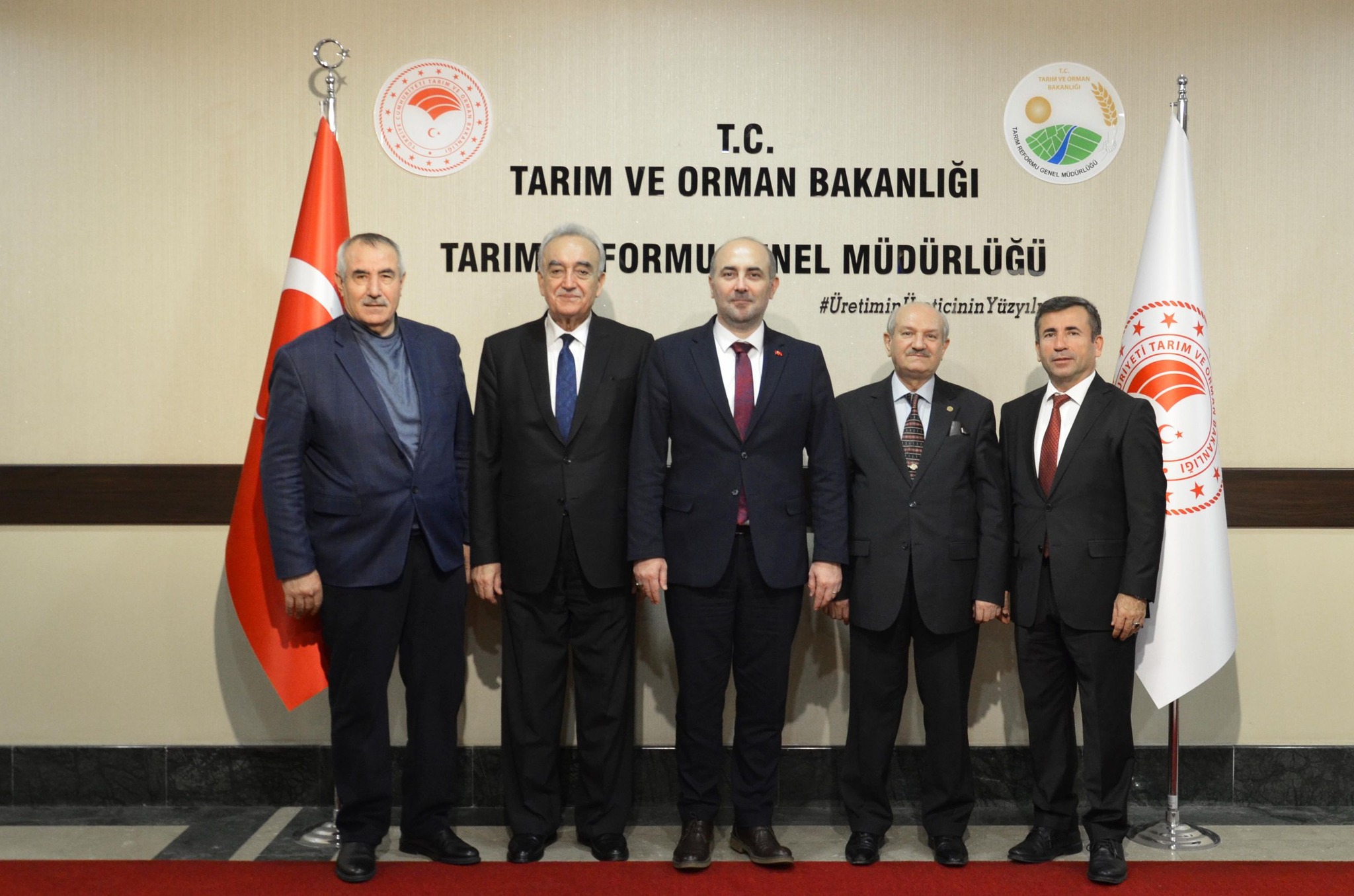 Tarım ve Orman Bakanlığı Tarım Reformu Genel Müdürlüğü Genel Müdür Yardımcısı Kutluhan Özdemir’e MESVAK Yüksek İstişare Kurulu Başkanı Av. Cemal Akın, Başkan Nurettin Konaklı, Başkan Yardımcısı Remzi Aksoy ve Denetim Kurulu üyesi Duran Ercan birlikte heyet olarak hayırlı olsun ziyaretinde bulunduk. Vakfımız çalışmalarına ilgi duyan Özdemir’e ziyaret vesilesiyle Vakıf’ın başta Kırıkkale Karakeçili besi çalışmaları, Kastamonu’ya yerel kalkınma ziyaretleri olmak üzere diğer AB destekli mesleki eğitim projeleri hakkında sohbet edildi. Bakanlıkla olabilecek yeni çalışmalar için iyi niyet beyanı yapıldı. Değerli Kutluhan Özdemir’e sıcak kabulleri için teşekkür ediyor, sağlık ve başarılar diliyoruz.