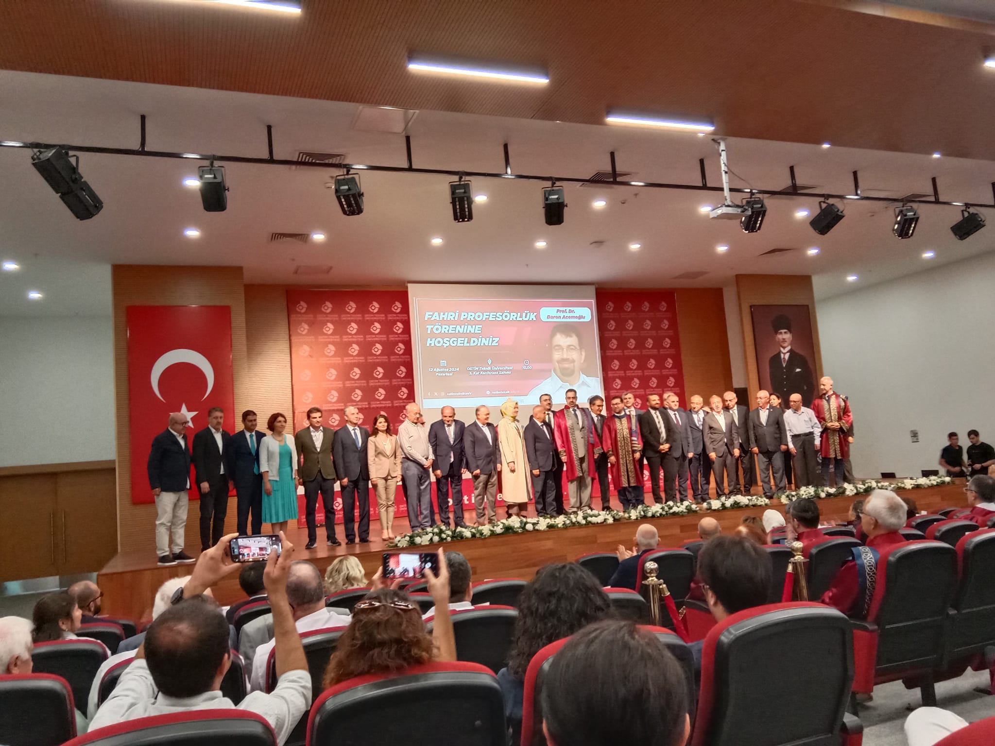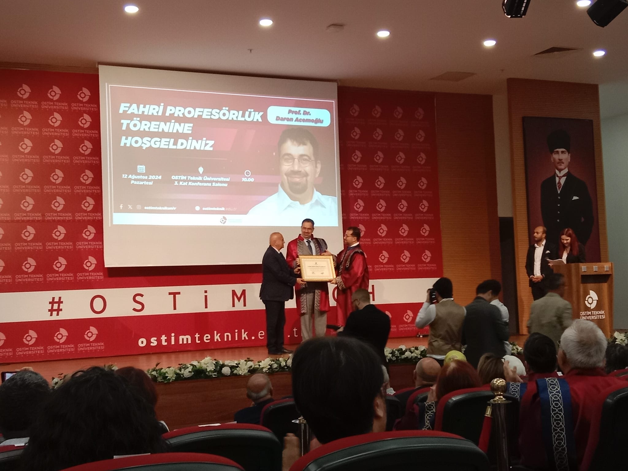 OSTİM Teknik Üniversitesi’de değerli Prof. Daron Acemoğlu için anlamlı bir Fahri Profesörlük töreni yapıldı. Tören açılışında OSTİMtech Mütevelli Heyet Başkanı Orhan Aydın ve Rektör Prof. Dr. Murat Yülek bilgi yüklü konuşmalar yaptılar.